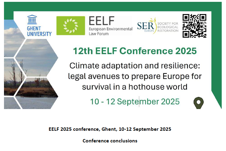 The EELF annual conference is meant to be the major annual assembly of European Environmental Law scholars and practitioners. It provides a unique opportunity to meet colleagues from across Europe and to discuss topical issues of environmental law development and implementation. The conference combines plenary keynotes, parallel sessions and an attractive social programme. It is addressed to both experienced senior experts and younger colleagues. The 12th Conference 2025 is hosted by Ghent University and will be dedicated to climate adaptation and resilience.