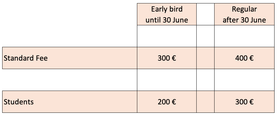 Registration fees: registration fees include 3 days participation at the conference (including coffee breaks, lunches, conference reception and dinner, boot trip to the city centre and excursion).